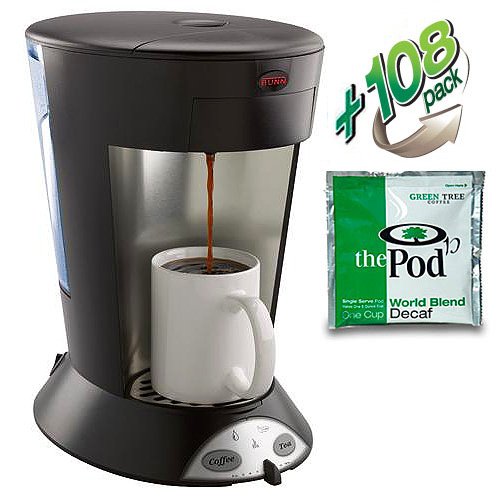 Get special price Bunn MCP My Cafe Pourover Commercial-Grade Pod Brewer (includes 108 World Blend Decaf Pods) with super saver shipping, today only